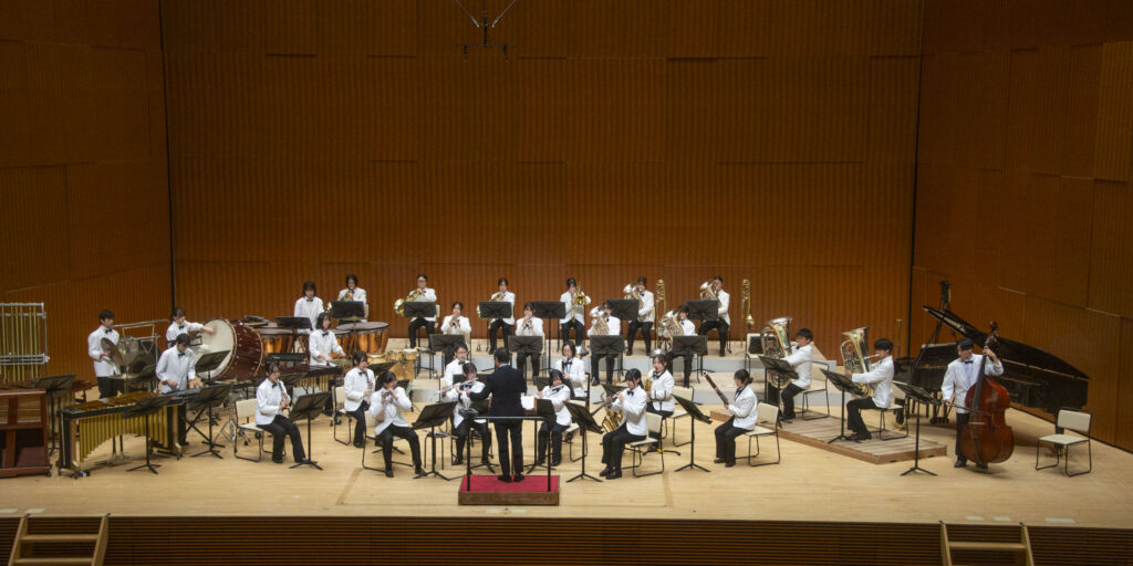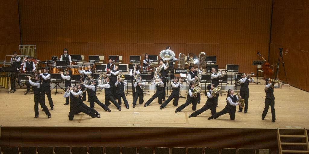 様々なジャンルの名曲をお届けするとともに、本校卒業生である歌舞伎役者・中村橋吾さんをお招きし、歌舞伎と吹奏楽の融合ステージを実現しました。