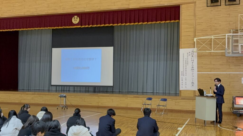 学校生活 2026.01.29 高校生に対する金融リテラシー教室 1月28日(水)、本校にて高校生に対する金融リテラシー教室が行われました。 当日は、株式会社荘内銀行 代表取締役専務執行役員 山科宏幸 様、山形県警察本部 生活安全部生活安全企画課 課長補佐 加藤幸生 様を講師としてお招きし、ご講演いただきました。 生徒たちは、普段の生活と金融がどのようにつながっているのかを学び、計画的にお金を管理することの大切さを知る貴重な機会となりました。