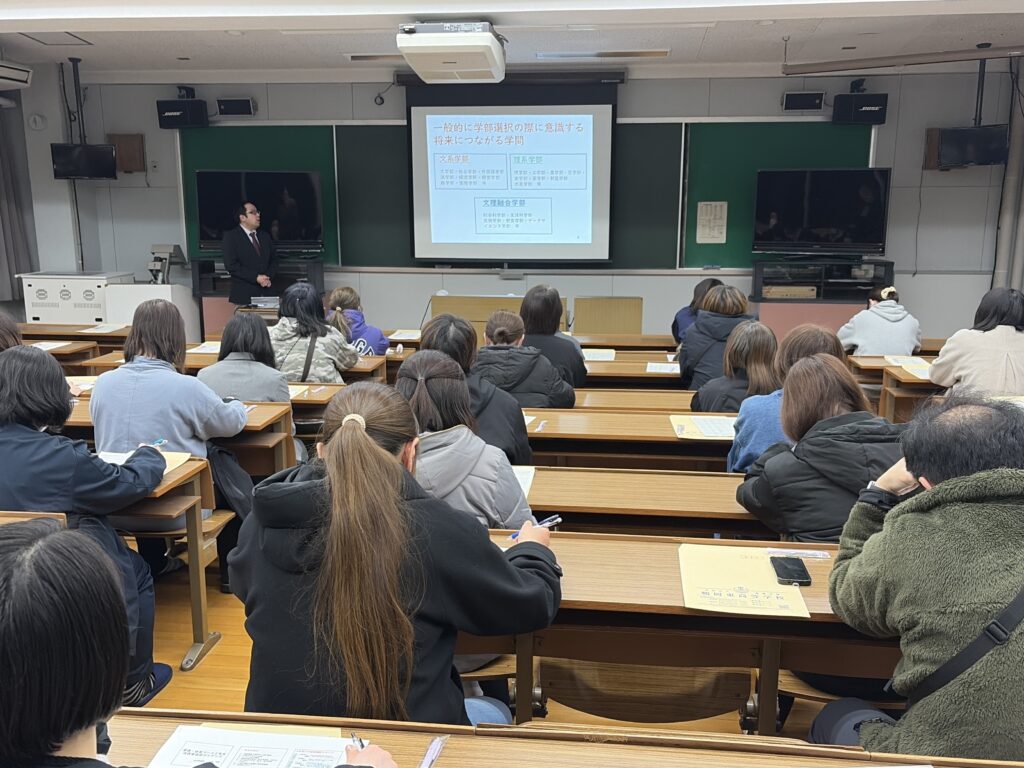 学校生活 2026.03.18 保護者進学ガイダンス 3月13日(金)、体育コースおよび普通コースの保護者の皆様を対象に、進学ガイダンスを実施いたしました。当日は、進路選択に向けた心構えや今後の流れ、受験に関する情報等について説明を行いました。 各コースの特色や進学実績、今後の学習の進め方についても紹介し、保護者の皆様に理解を深めていただく機会となりました。
